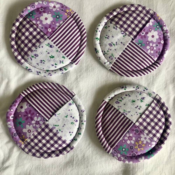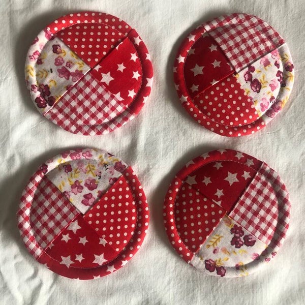Sous-verres patchwork en coton, rembourrés avec un molleton léger pour une meilleure protection de vos tables.
