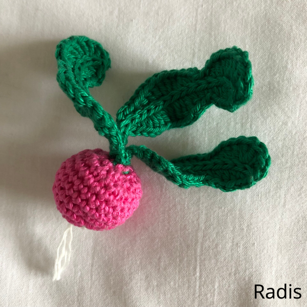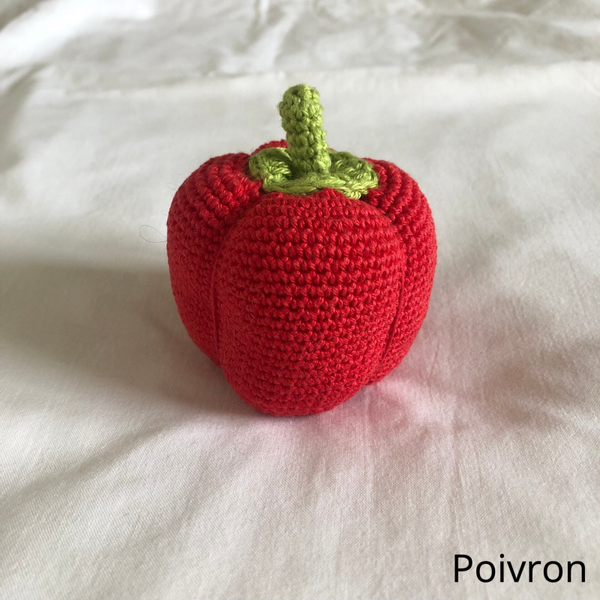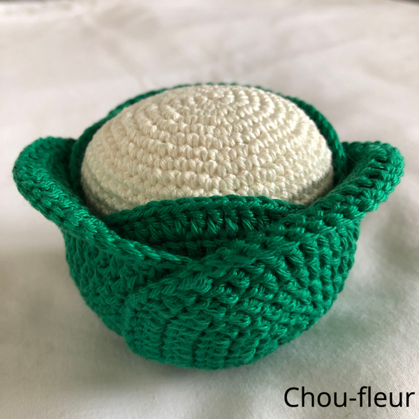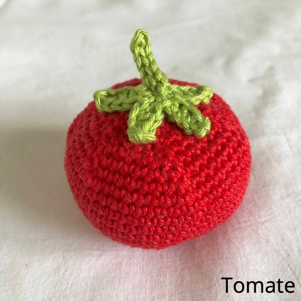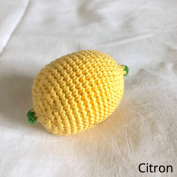 Lot de 5 fruits et légumes crochetés en coton certifié Oeko-Tex*, rembourrés en polyester recyclé.